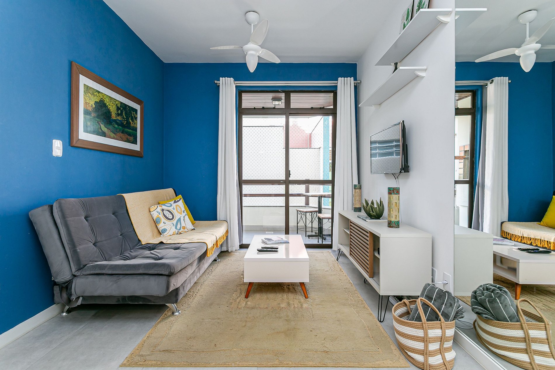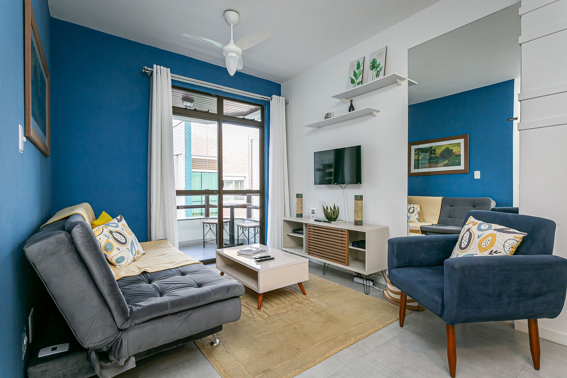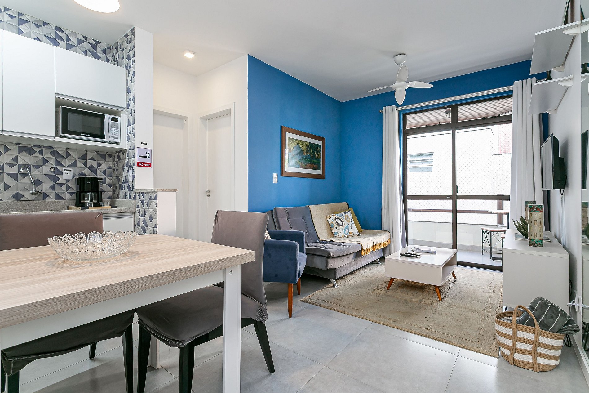 O imóvel de 45,45m² conta com um quarto com uma CAMA DE CASAL E AC SPLIT (SÓ FRIO), uma sala de estar com SOFÁ-CAMA DE SOLTEIRO E SMART TV DE 32", além de uma varanda com churrasqueira.