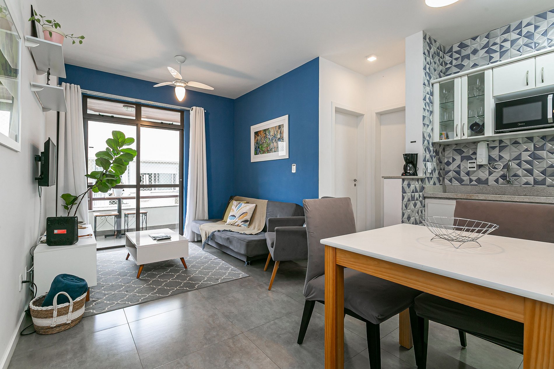 O imóvel de 45,45m² conta com um quarto com uma CAMA DE CASAL E AC SPLIT (SÓ FRIO), uma sala de estar com SOFÁ-CAMA DE SOLTEIRO E SMART TV DE 32", além de uma varanda com churrasqueira.