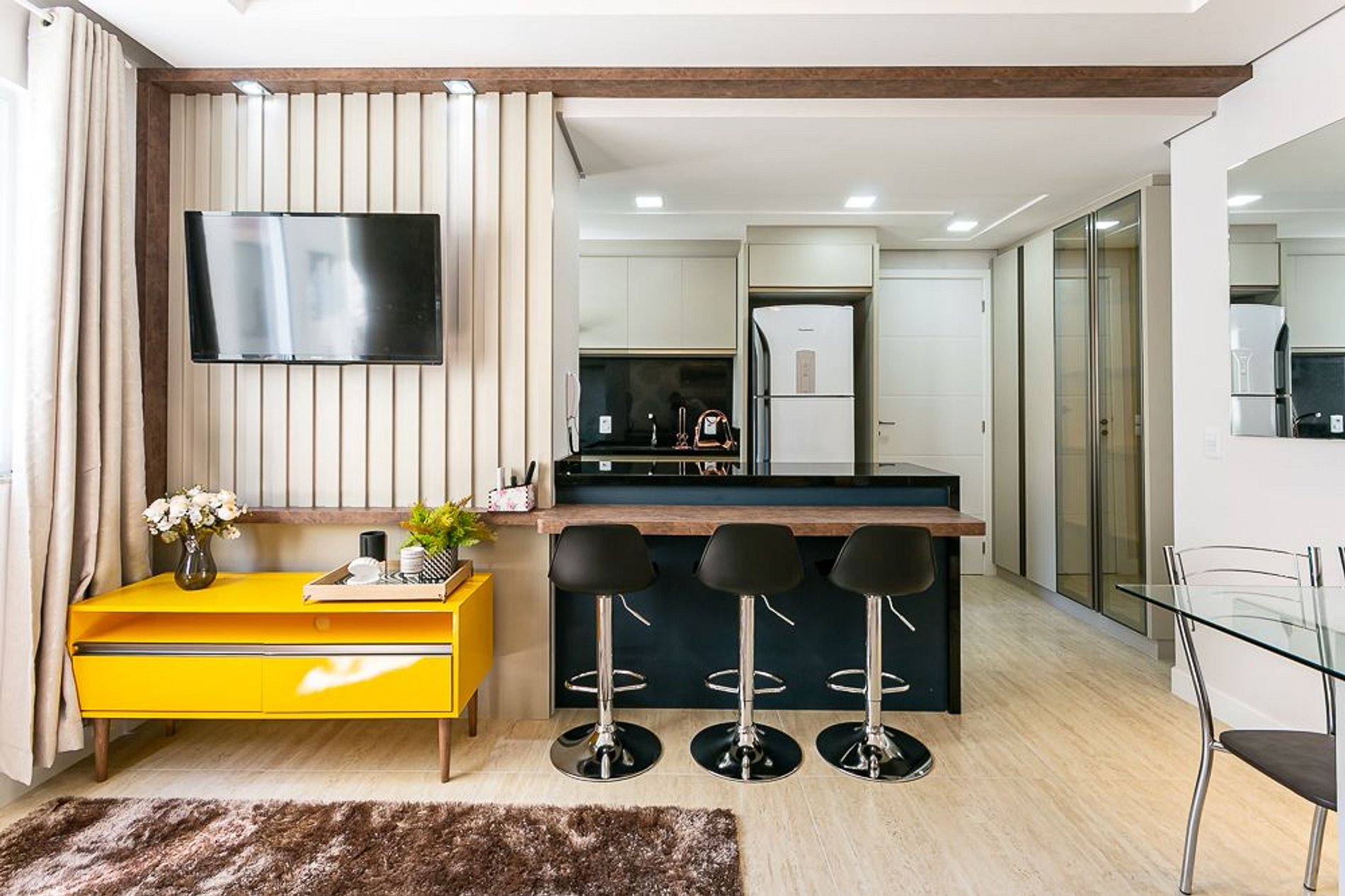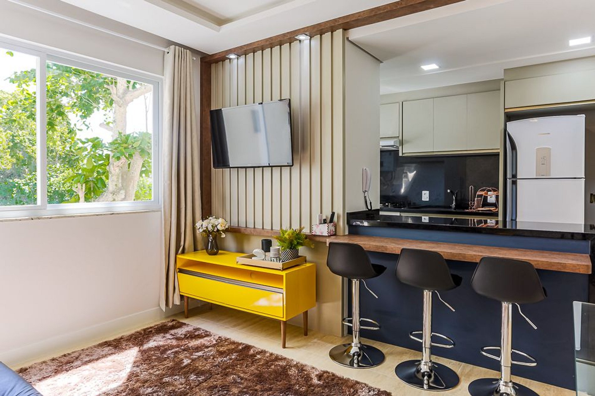 Apto lindo, compacto e funcional. Continha tudo conforme descrição do anúncio.