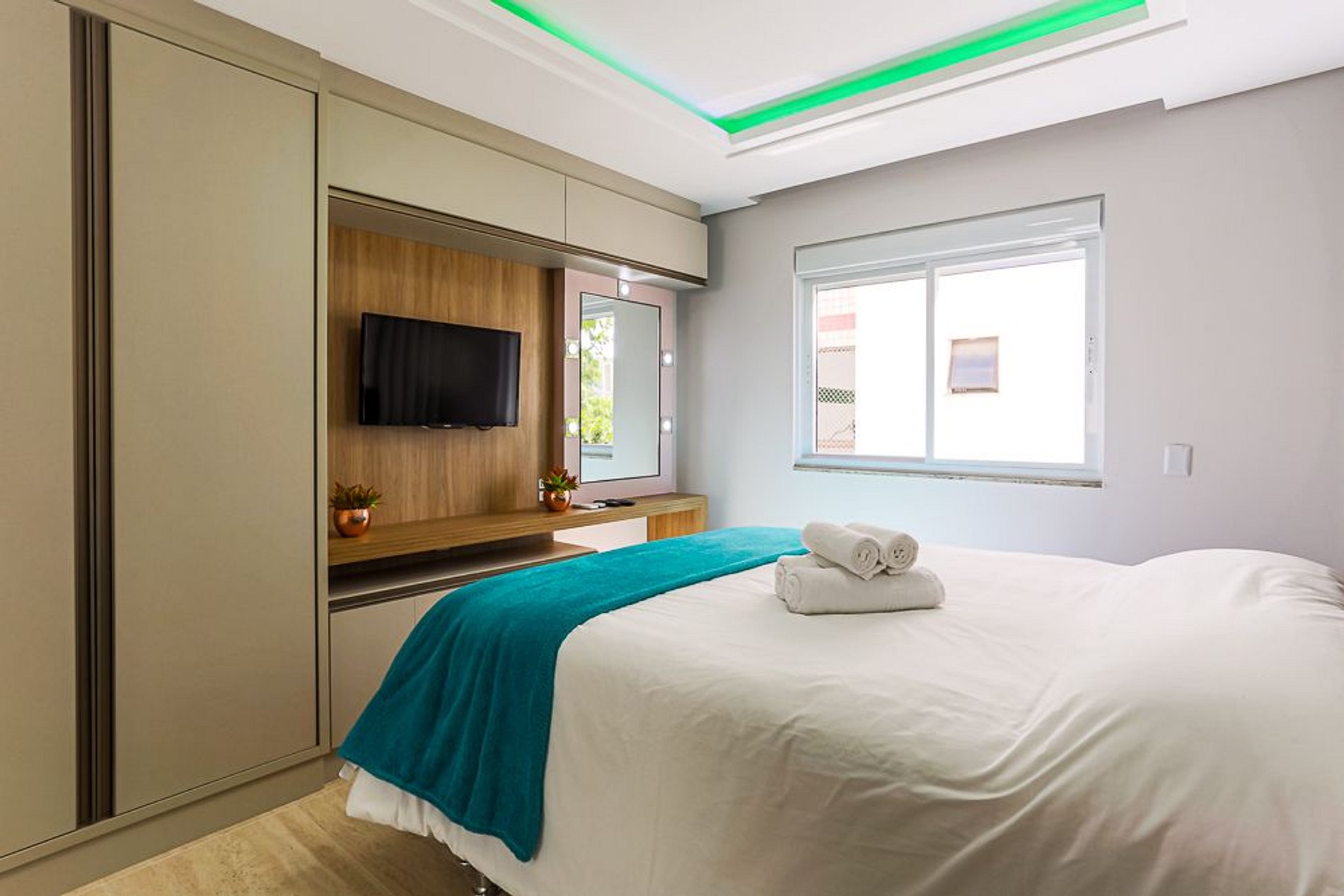 Nosso espaço procura trazer as facilidades e conveniências de um hotel com o conforto de um apartamento. Um apartamento totalmente mobiliado com ar condicionado SPLIT, com todos os itens e utensílios de cozinha, Smart TV, internet com WI-FI, vaga de garagem. No quarto uma cama Queen com colchão extra e na sala um sofá cama super confortável que acomoda 2 pessoas. A 70 metros da praia dos ingleses próximo a restaurantes, mercado, farmácia, salão de beleza, food trucks, isso tudo num raio de 250 metros. Conforto e segurança ao seu redor. O imóvel possui roupa de cama completa, toalhas de banho, rosto e piso.