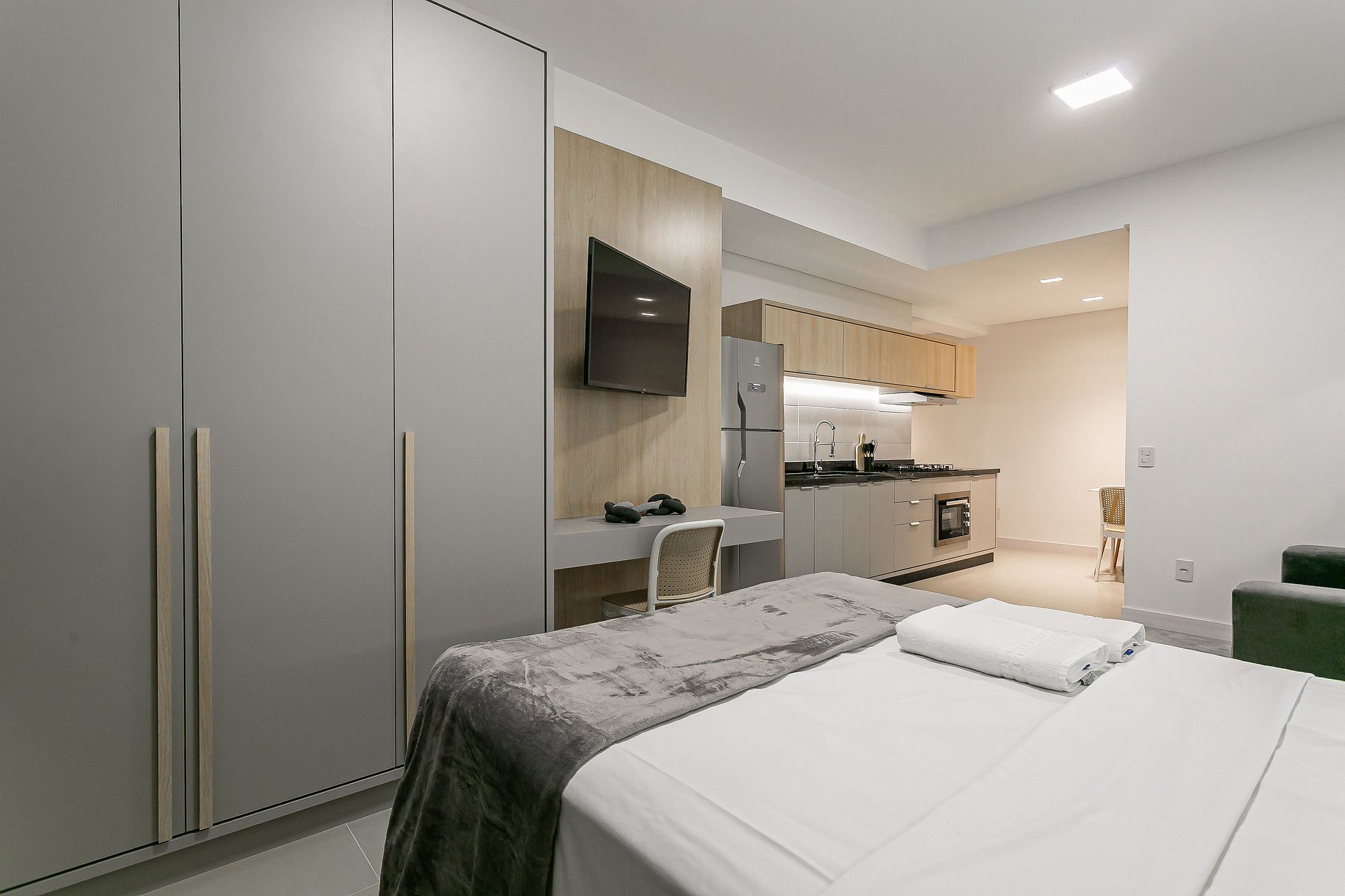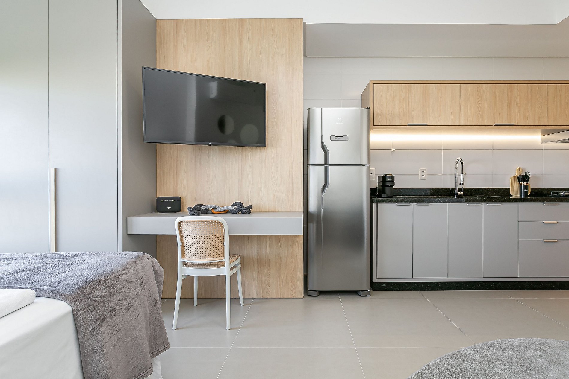 O studio está localizado no Villa di Pádova, um dos mais novos condomínios completos e requisitados de Floripa.