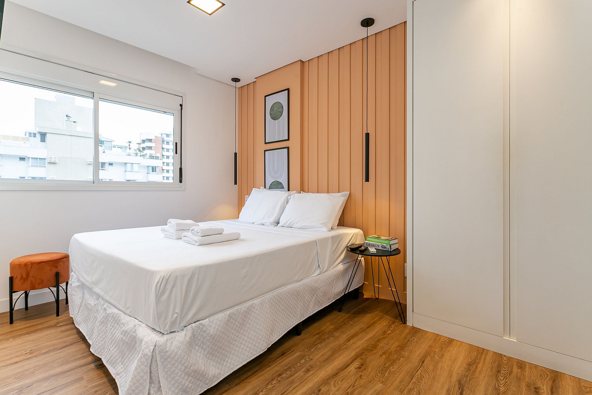O imóvel de 66m² conta com uma suíte com cama QUEEN e Smart TV, um quarto com cama de CASAL e uma sala de estar com Smart TV. Todos os cômodos são equipados com Ar-condicionado SPLIT.