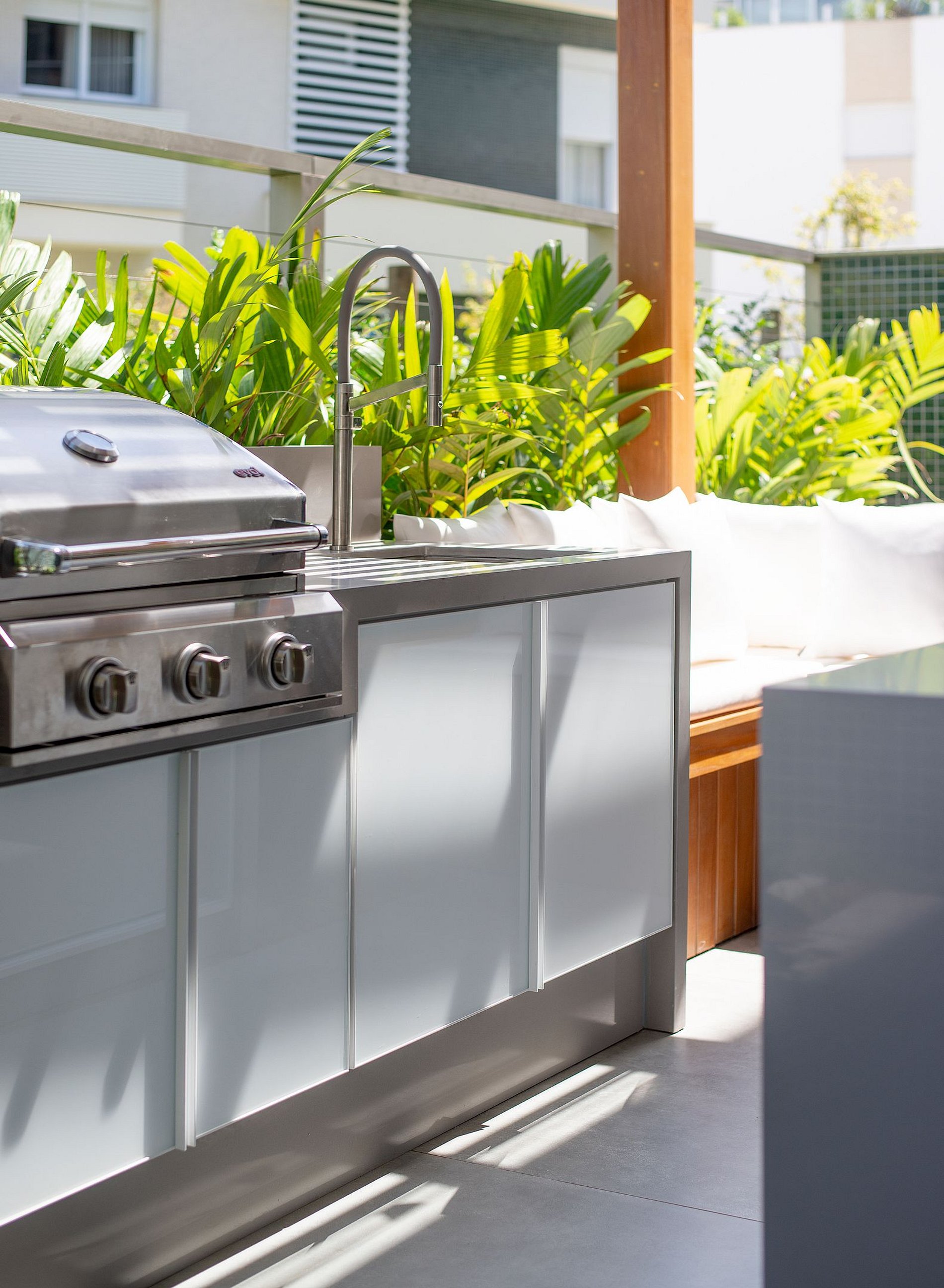 O apartamento de 138m² conta com duas suítes, área externa privativa ampla e uma sala de estar com Smart TV e Adega. Todos os cômodos são equipados com Ar-condicionado SPLIT.