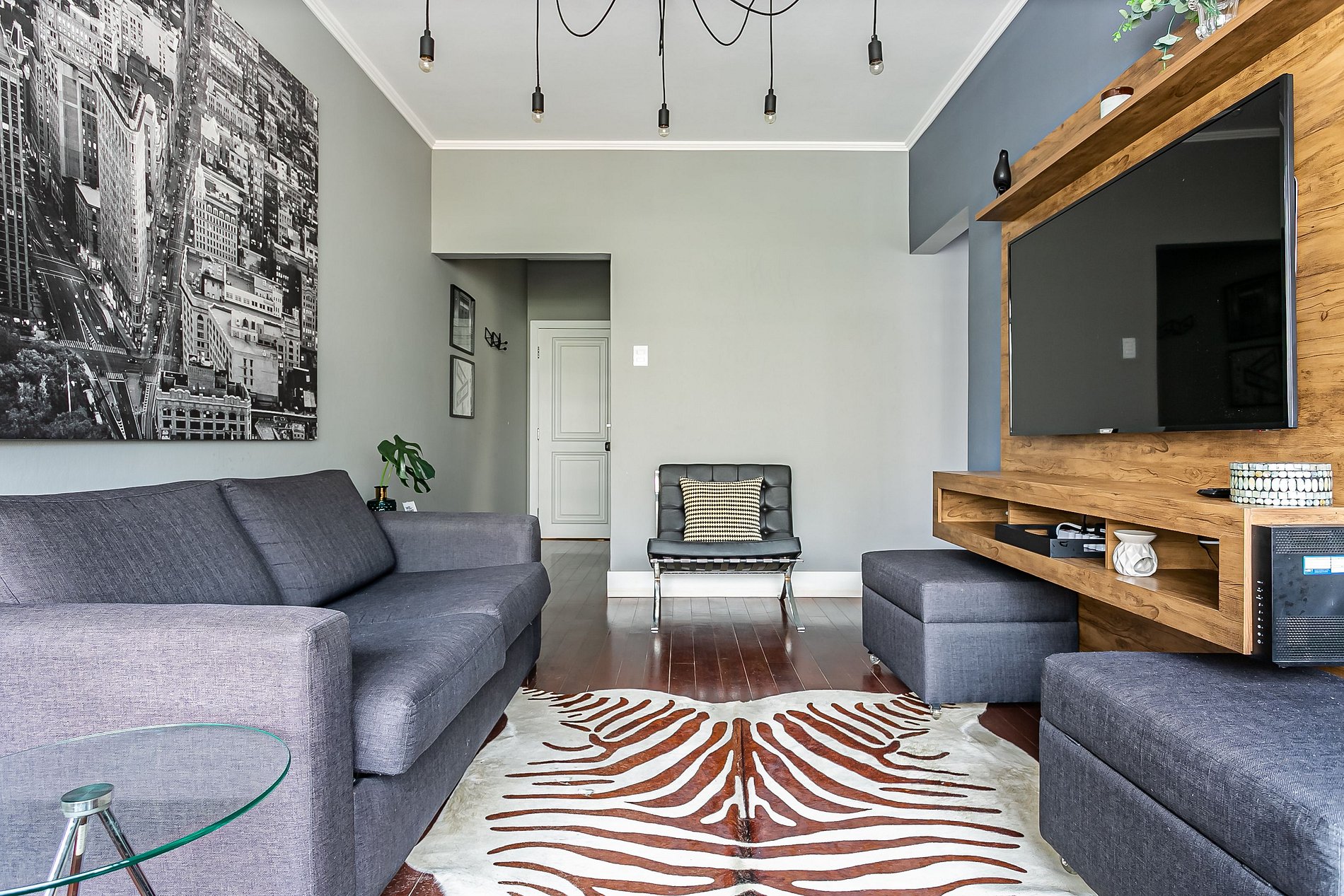 - Sala equipada com Smart TV 4K de 55 polegadas