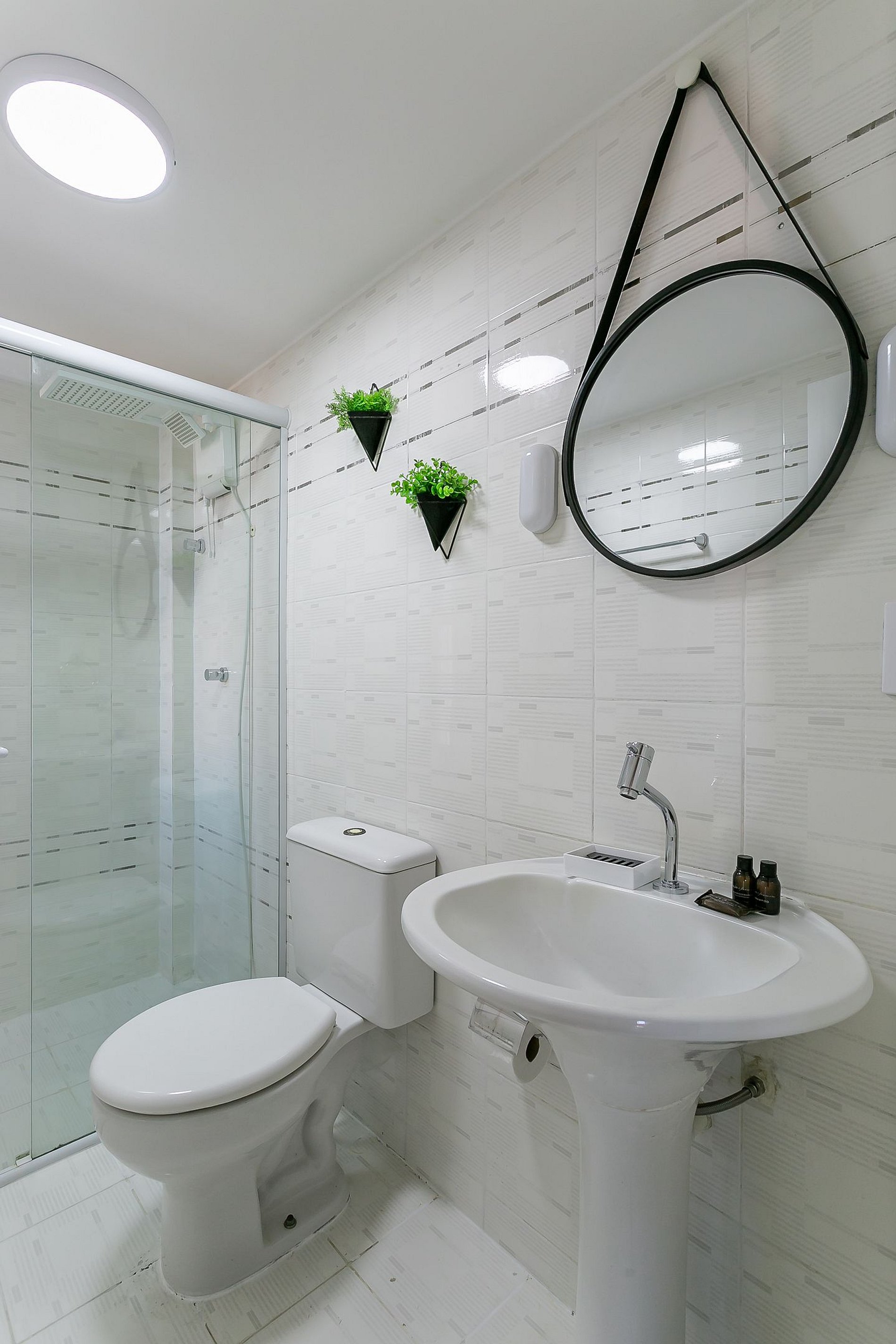 - Todos os banheiros possuem amenities: um shampoo, um condicionador, um sabonete e um rolo de papel higiênico.
