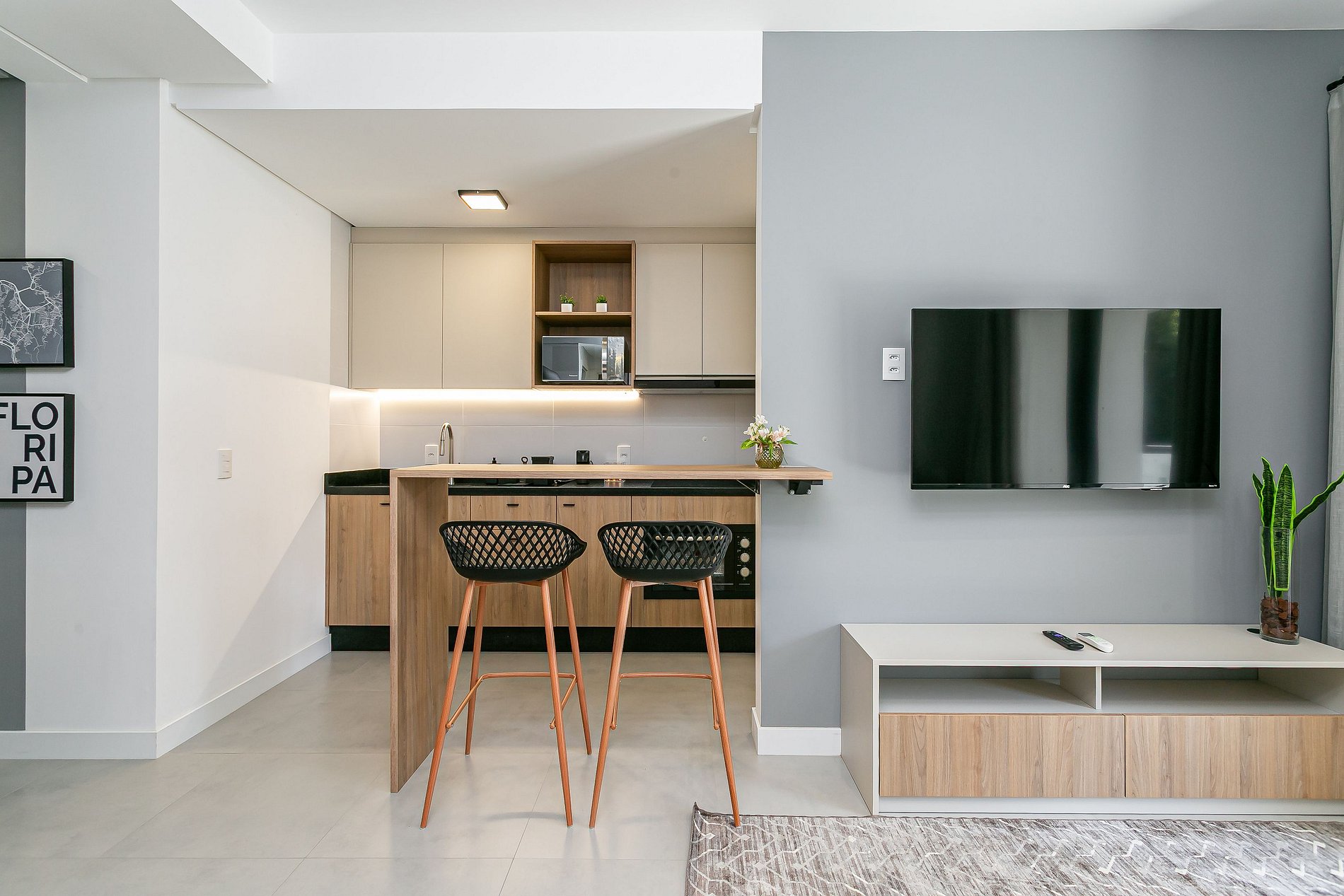- SALA DE ESTAR COM SMART TV DE 50" E AC SPLIT ( ATENÇÃO: A UNIDADE ESTÁ TEMPORARIAMENTE SEM AR-CONDICIONADO NA SALA, POIS O EQUIPAMENTO FOI RETIRADO PARA MANUTENÇÃO. )