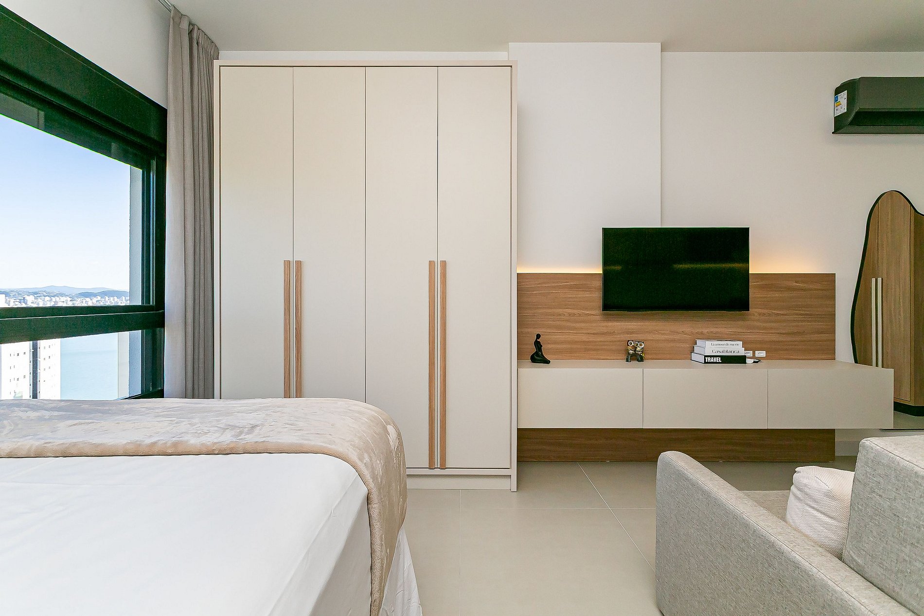 O imóvel de 33m² conta com uma CAMA QUEEN, SOFÁ-CAMA DE SOLTEIRO, SMART TV DE 43" E AC SPLIT (QUENTE E FRIO).
