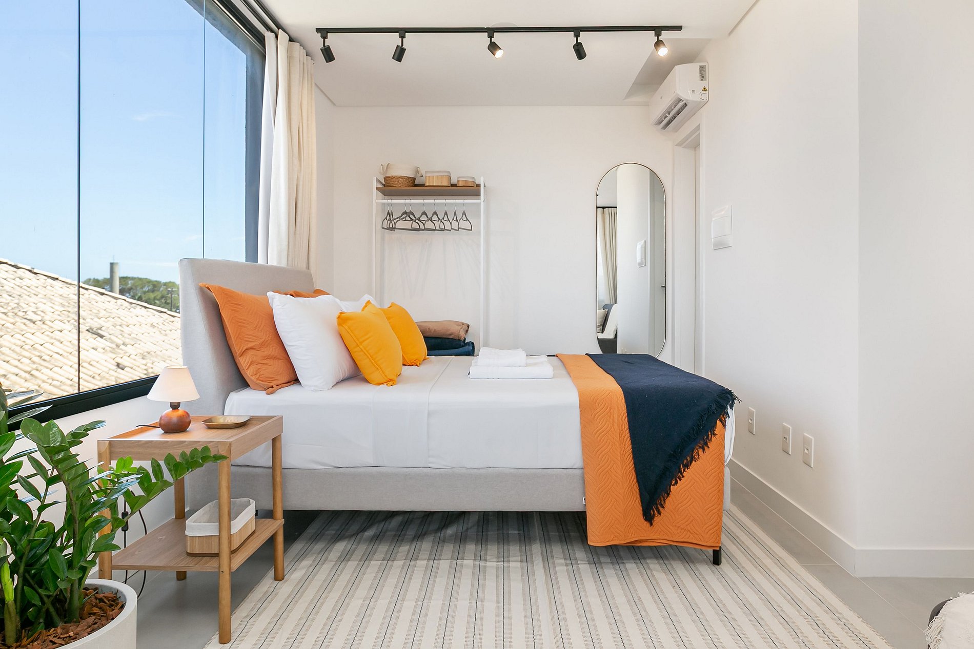 O imóvel de 42m² conta com uma cama de CASAL, um SOFÁ CAMA de SOLTEIRO e uma Smart TV de 50". Além disso, o studio conta com AC SPLIT (QUENTE E FRIO).