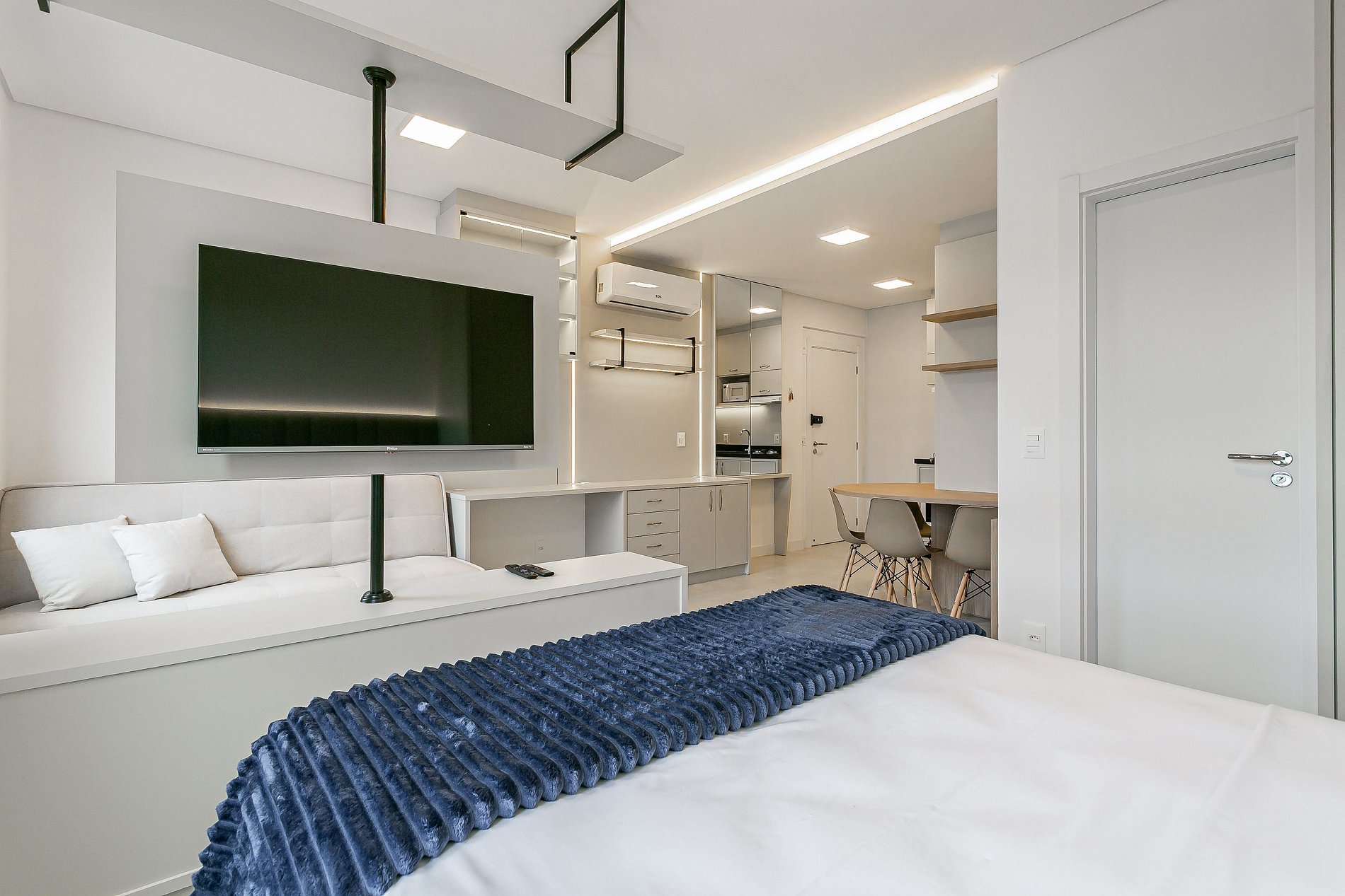 O imóvel de 36m² conta com uma CAMA CASAL, SMART TV DE 42" E AC SPLIT (QUENTE E FRIO).