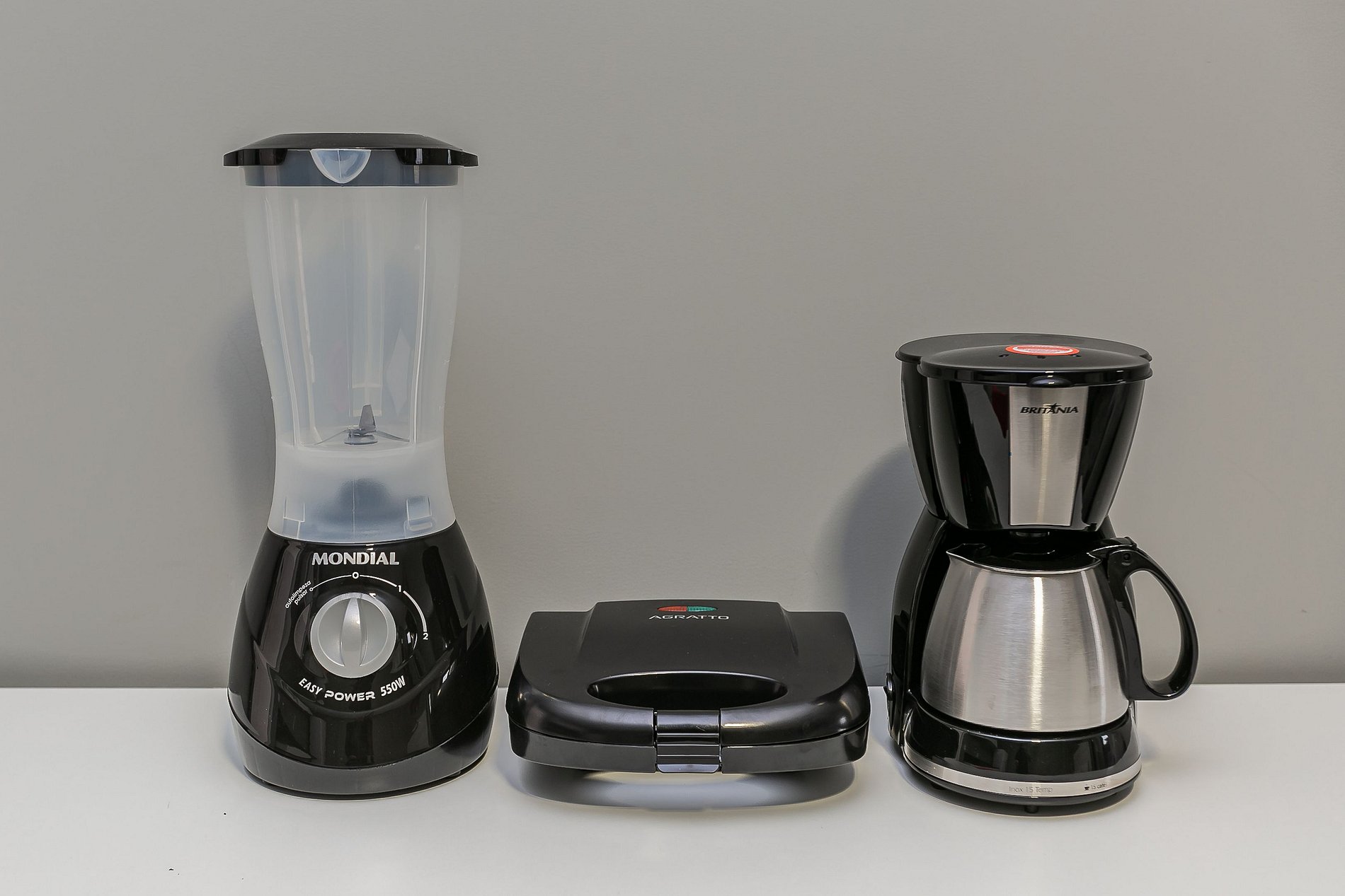 - Cozinha completa com cafeteira, geladeira com congelador, liquidificador, micro-ondas, sanduicheira, utensílios de cozinha e jogo de panelas