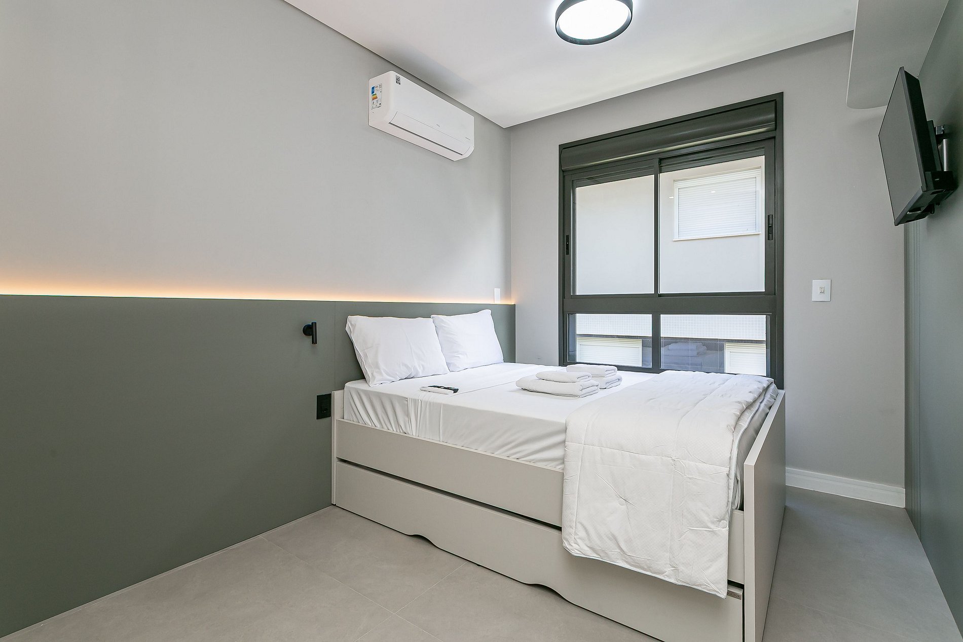 O imóvel de 70,13m² conta com DUAS SUÍTES com cama de CASAL e Smart TV e uma sala com Smart TV e SOFÁ-CAMA de CASAL. Todos os cômodos são equipados com Ar-condicionado SPLIT.