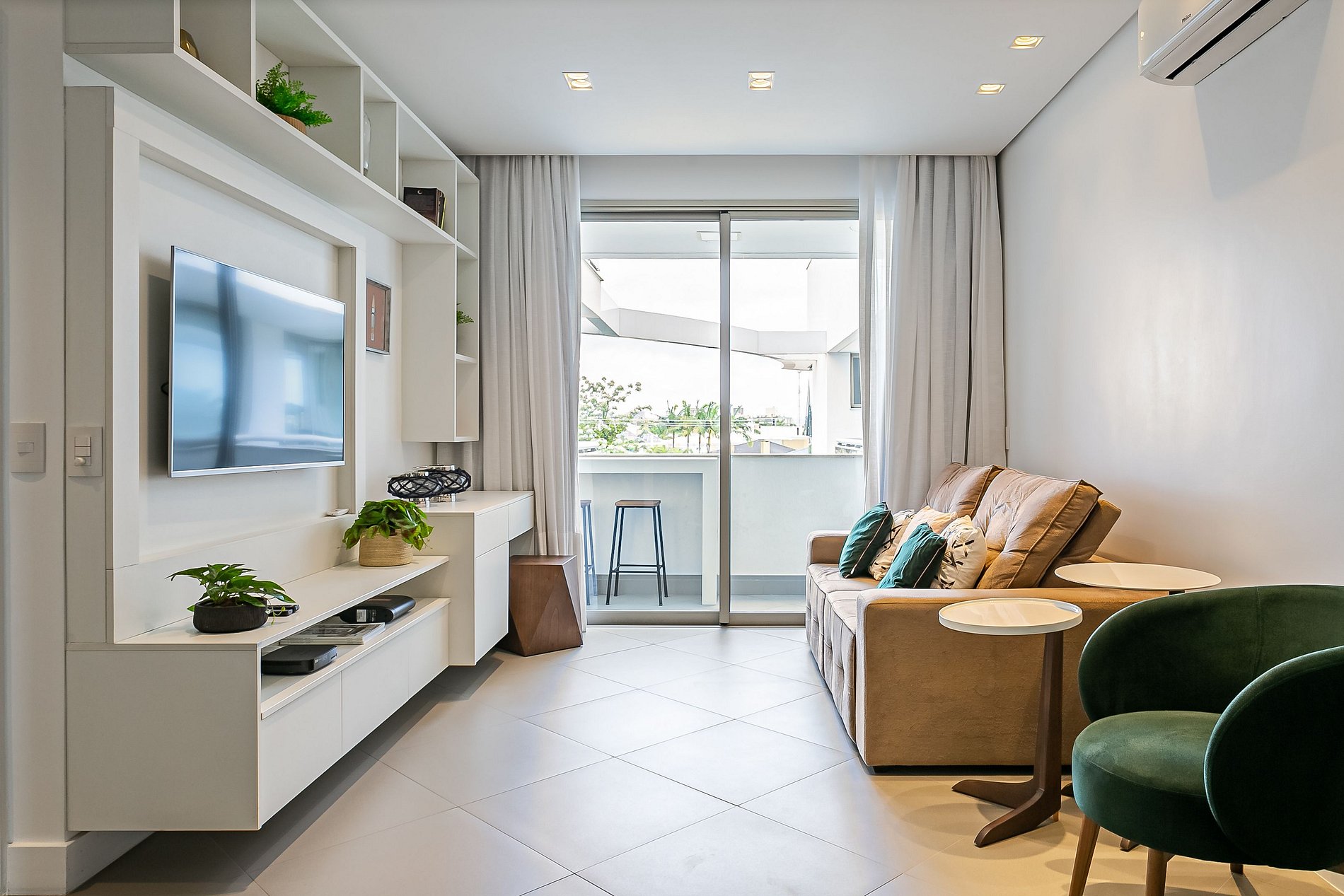- Sala equipada com Smart TV e Ar-condicionado SPLIT