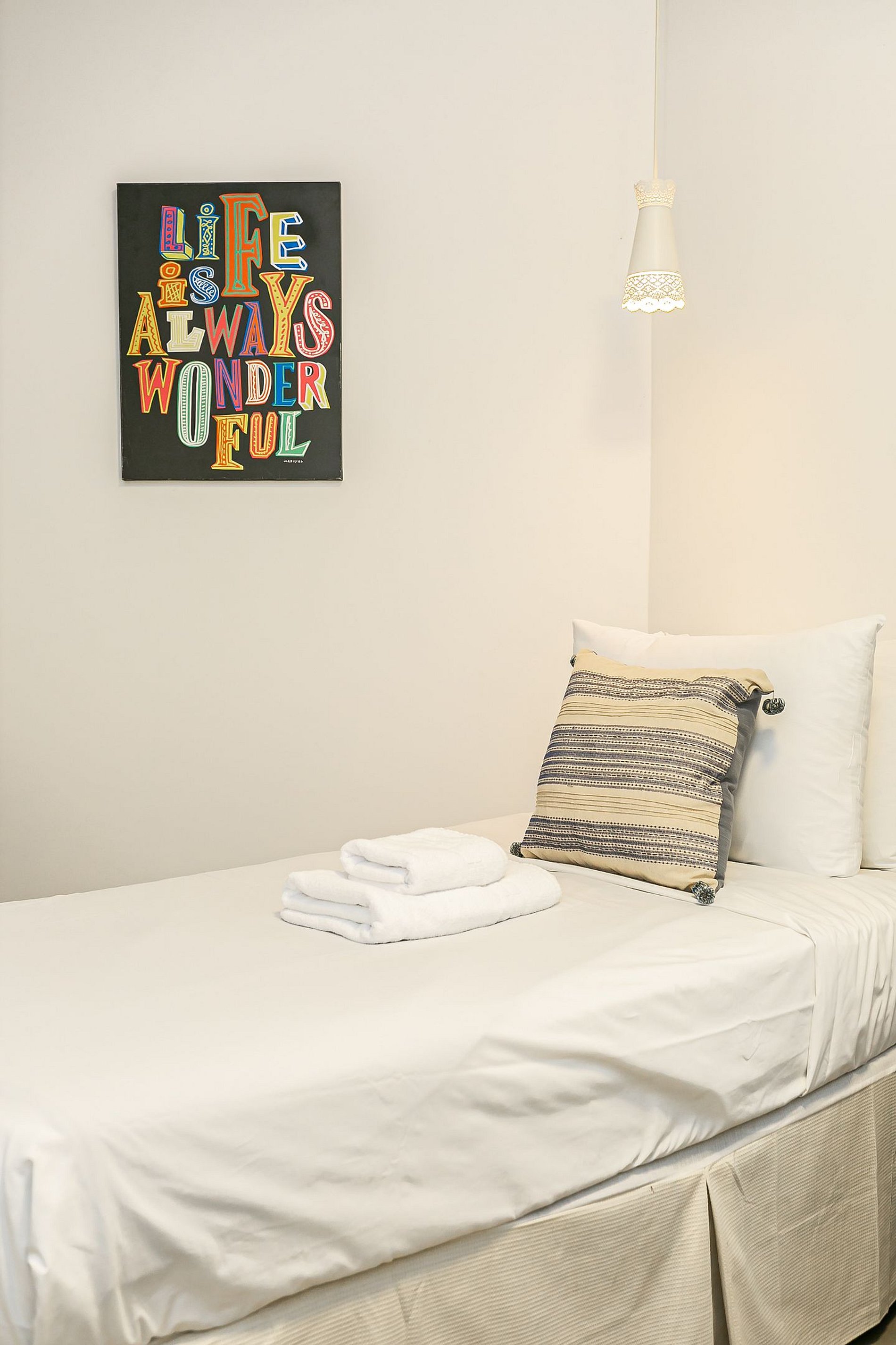 - Todas as camas possuem roupa de cama completa.