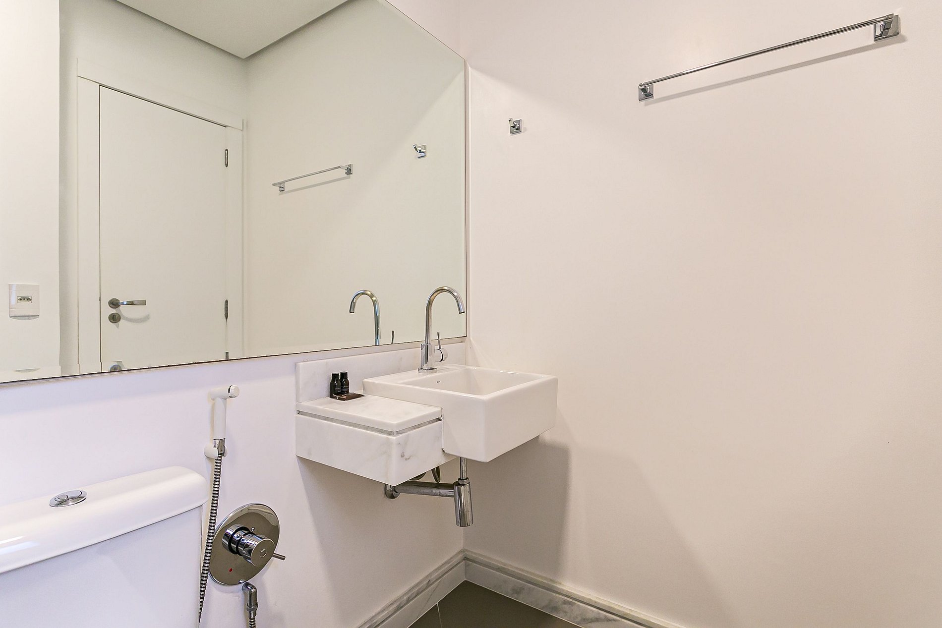 - Todos os banheiros possuem amenities: um shampoo, um condicionador, um sabonete e um rolo de papel higiênico.