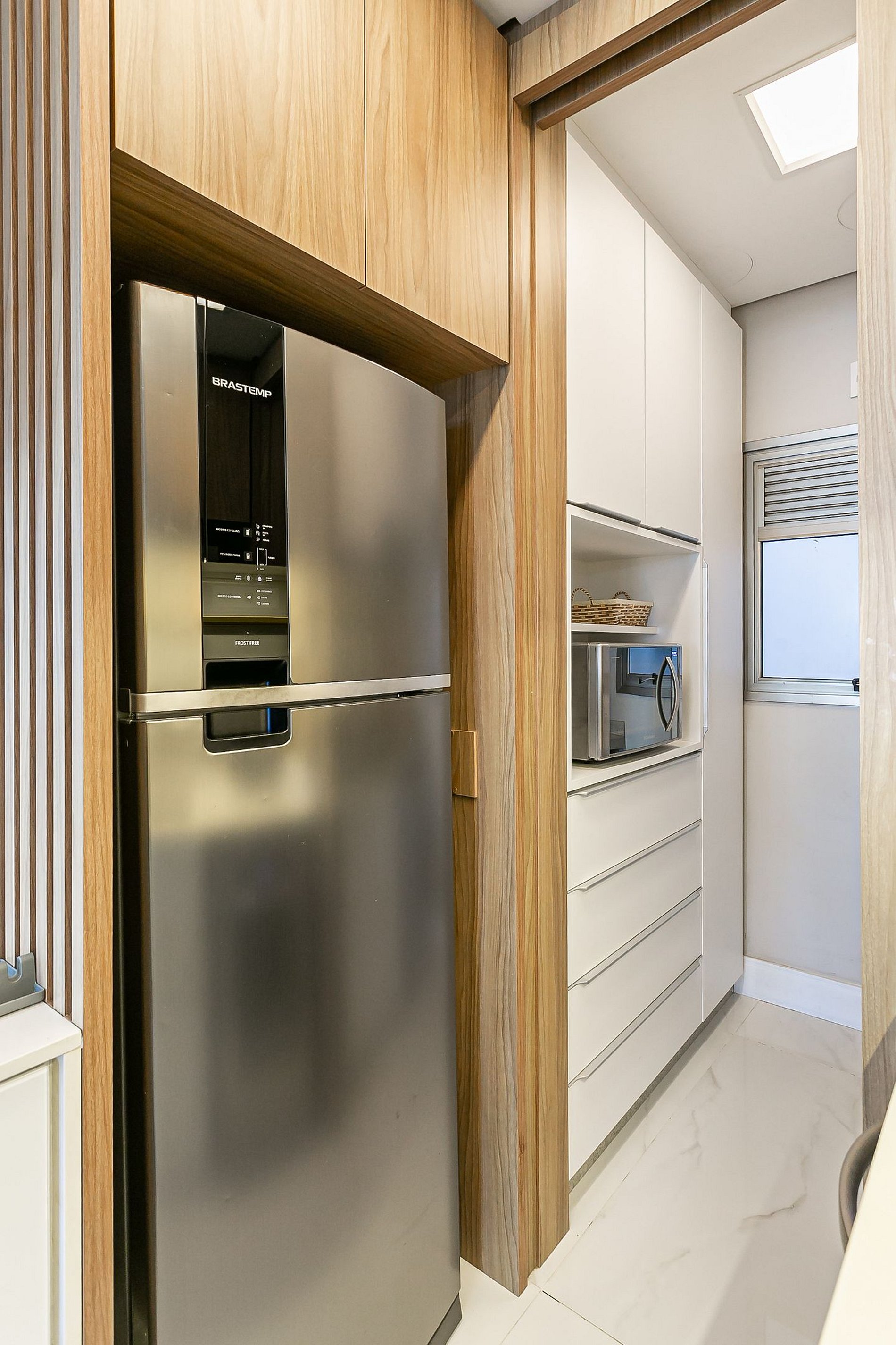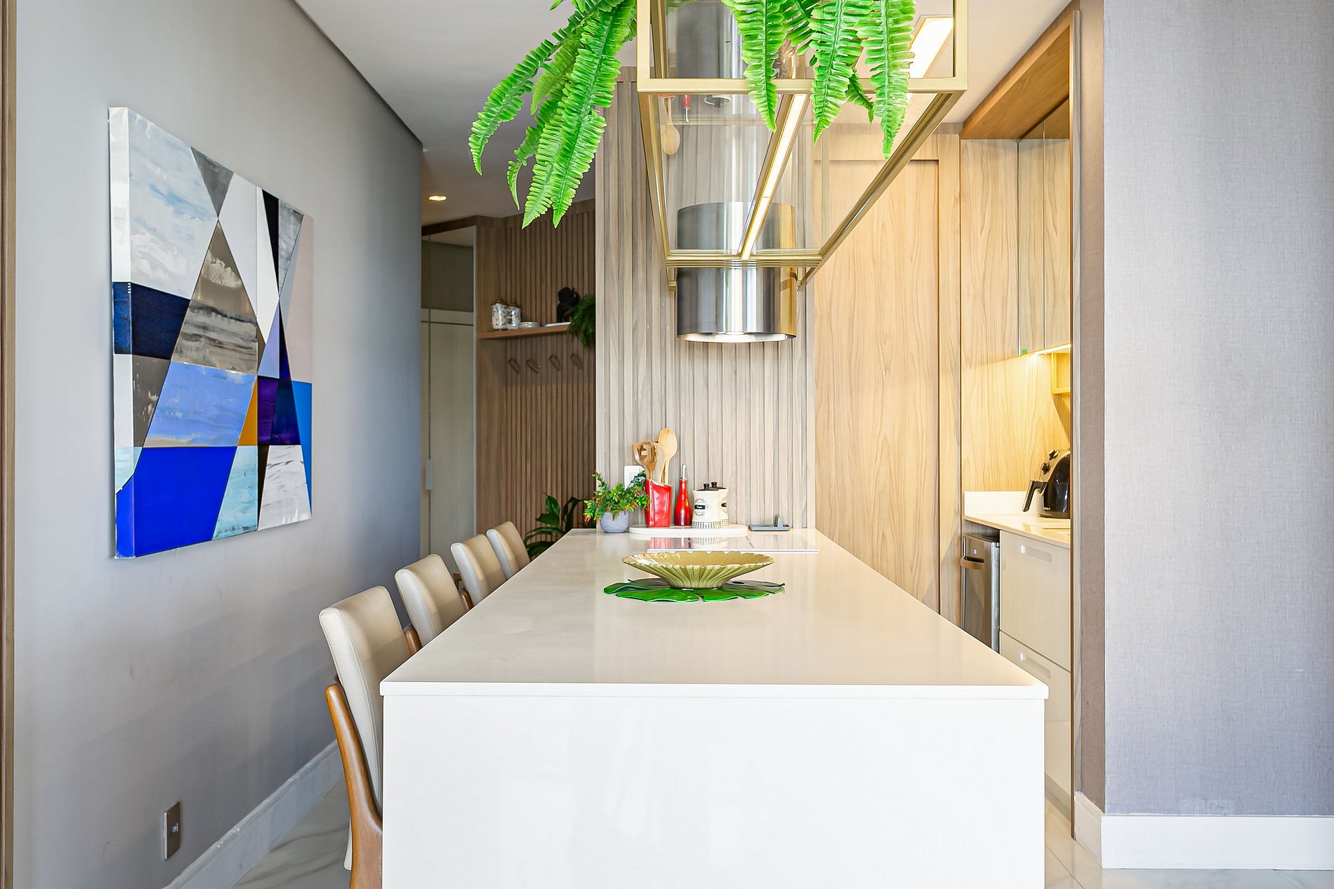 - Cozinha completa com air fryer, cafeteira, geladeira com congelador, liquidificador, máquina lava-louças, micro-ondas, sanduicheira, utensílios de cozinha e jogo de panelas