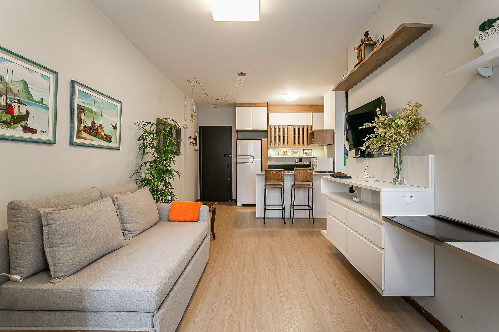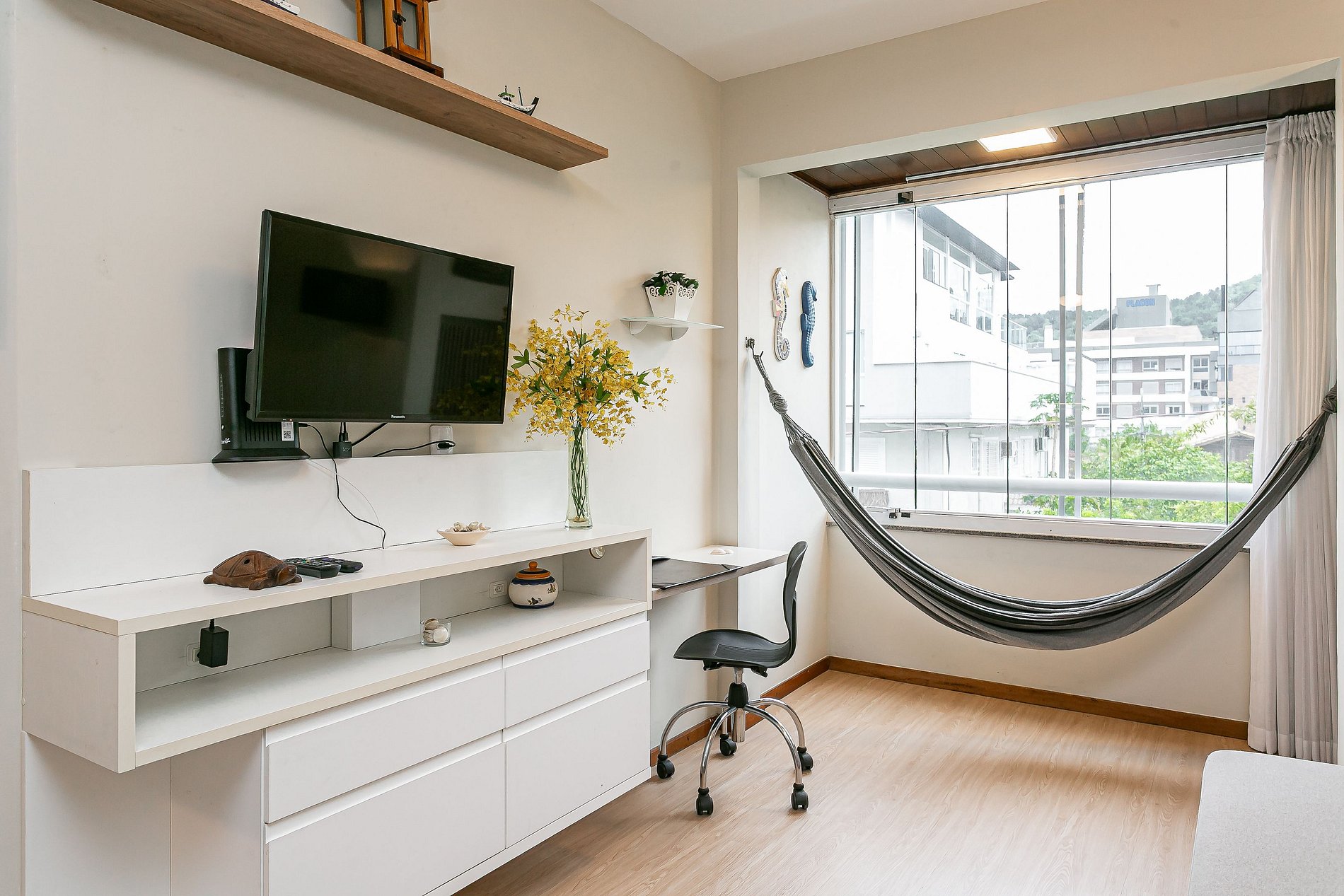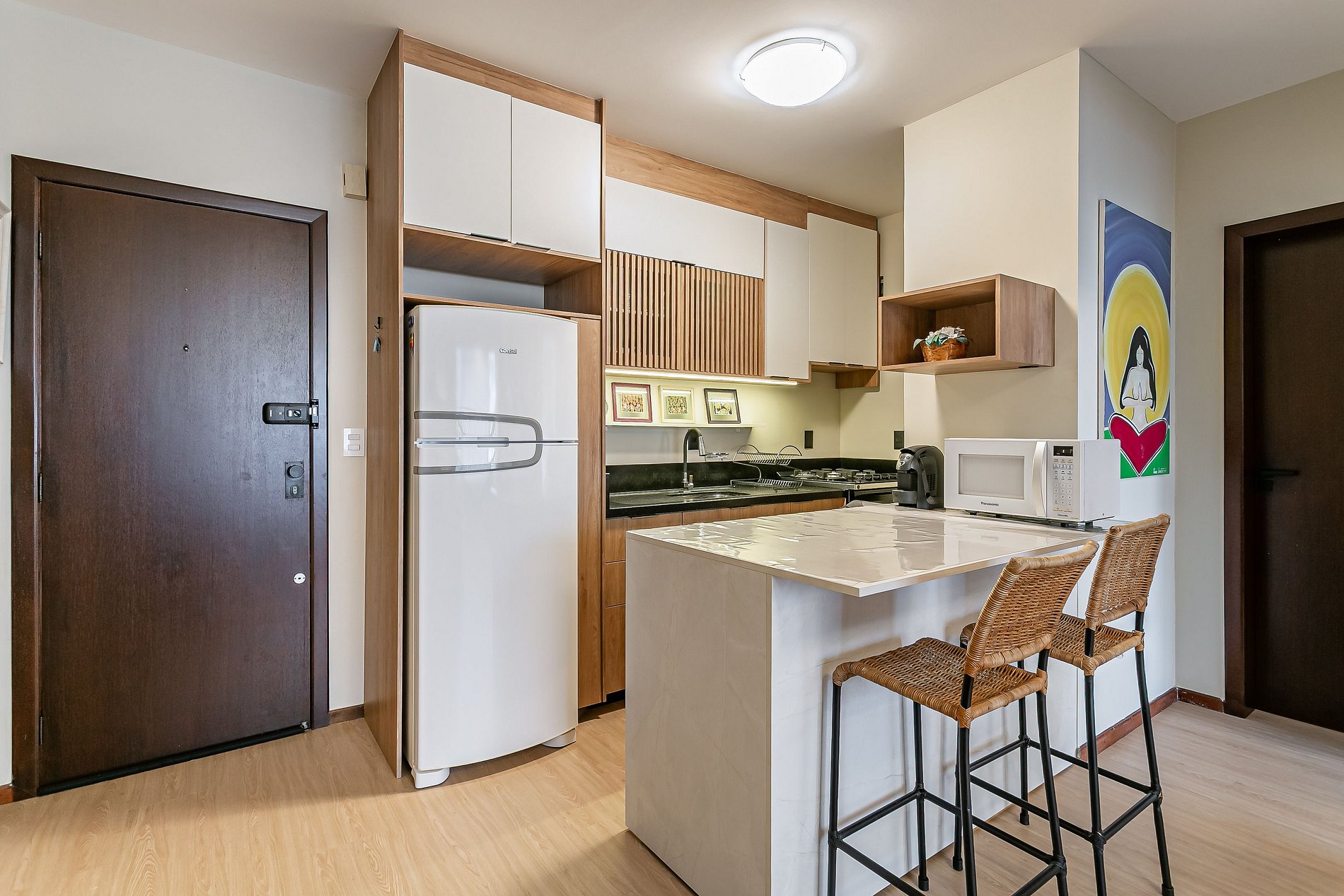 O imóvel de 43m² conta com uma CAMA QUEEN, SMART TV DE 32" E AC SPLIT (QUENTE E FRIO).