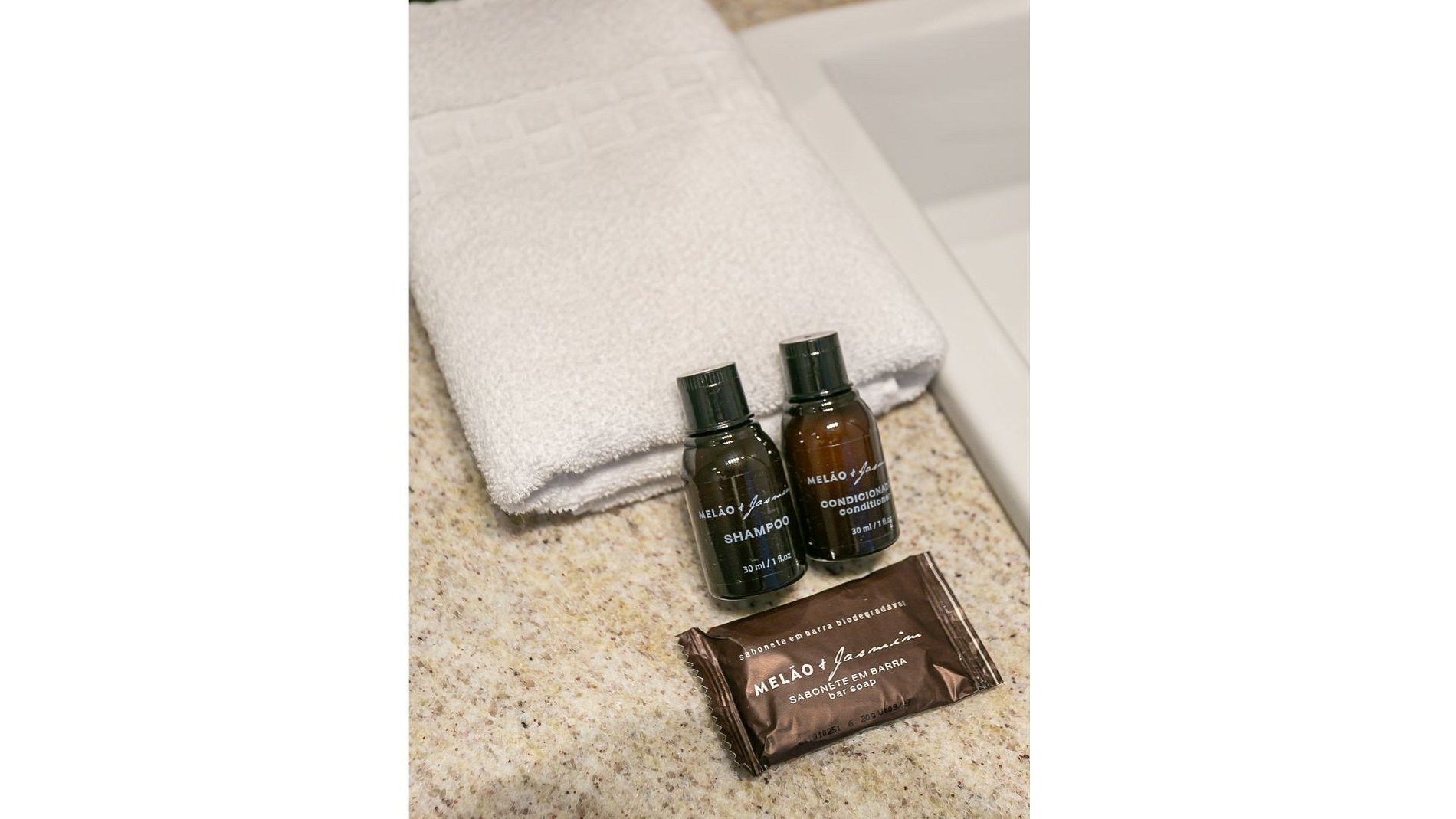 - Todos os banheiros possuem amenities: um shampoo, um condicionador, um sabonete e um rolo de papel higiênico por banheiro.